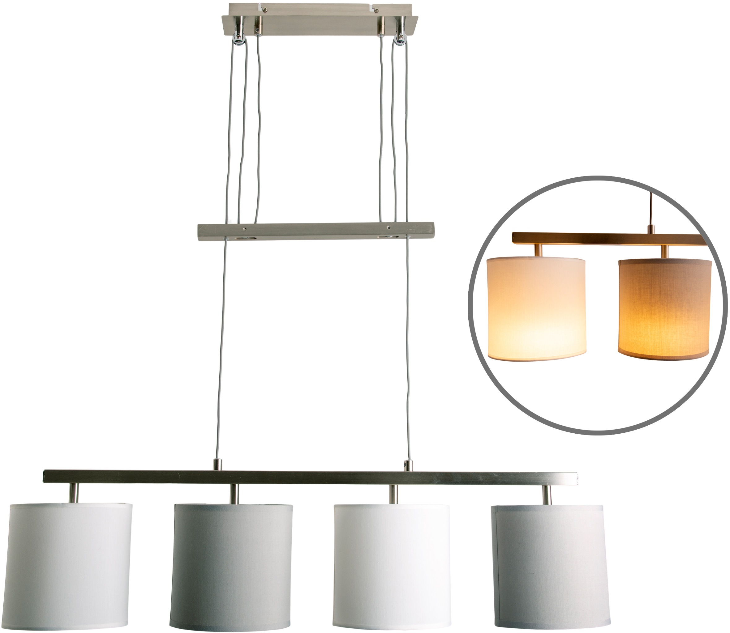 NÄVE Pendelleuchte "Tilde", grau (grau, weiß), Ø 15,00cm H: 116,00cm, Lampen, 4 x E27 mit Textilschirmen je 2 x in grau und weiß höhenverstellbar