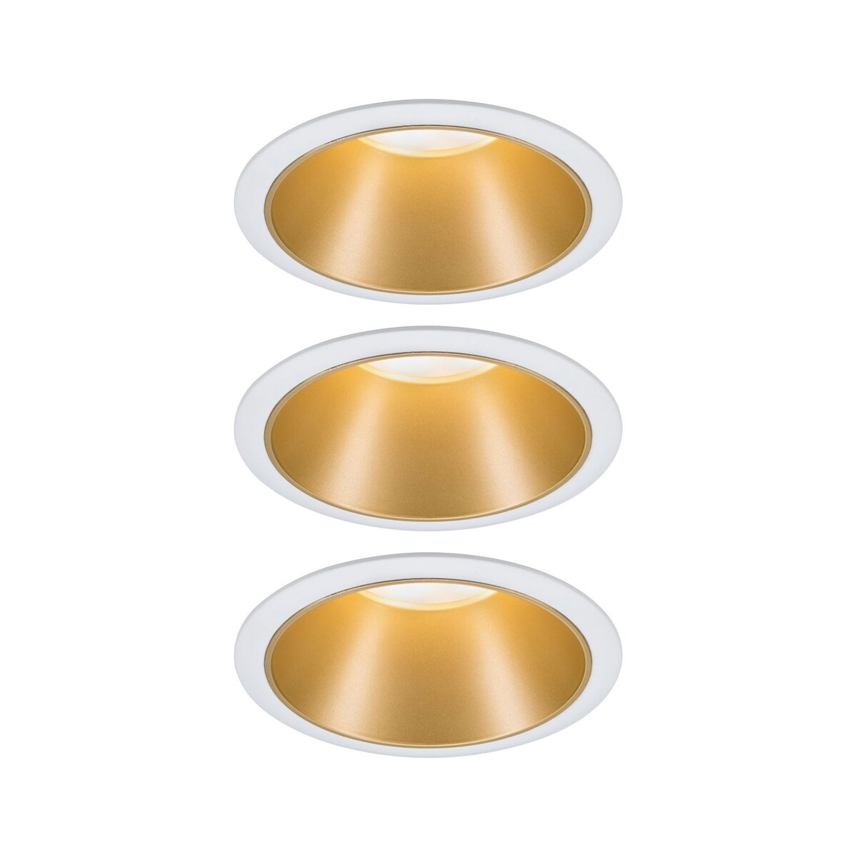Paulmann LED Einbauleuchte 3-Step-Dim Cole Coin Basisset IP44 rund 88mm Coin 3x6W 3x460lm 230V dimmbar 2700K Weiß matt#Gold matt 93406