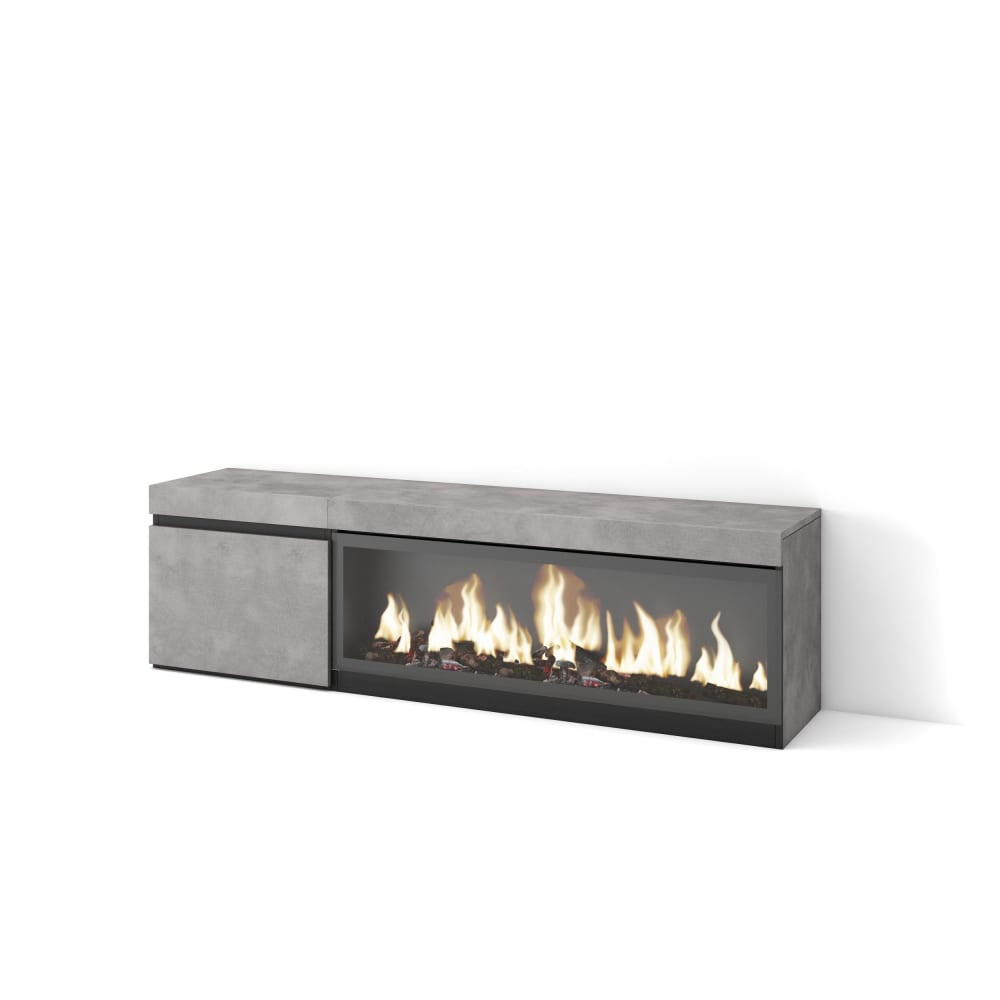 Mobile TV effetto legno cemento camino effetto fiamma 200x35x45cm