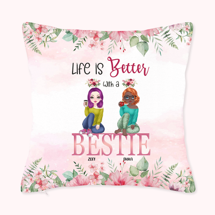 Personalizzato Better Life Better Bestie Garden Friend Party Throw Pillow Cover Gift for Best Friend Bedroom Decor
