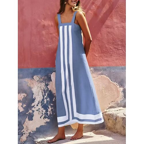Per donna Abito maxi Abito a Tubino Abito Sottoveste Vacanza Casual All'aperto Uscire Vestibilità comoda A righe Senza Maniche Collo quadrato Blu Nero Rosso Caffè Estate