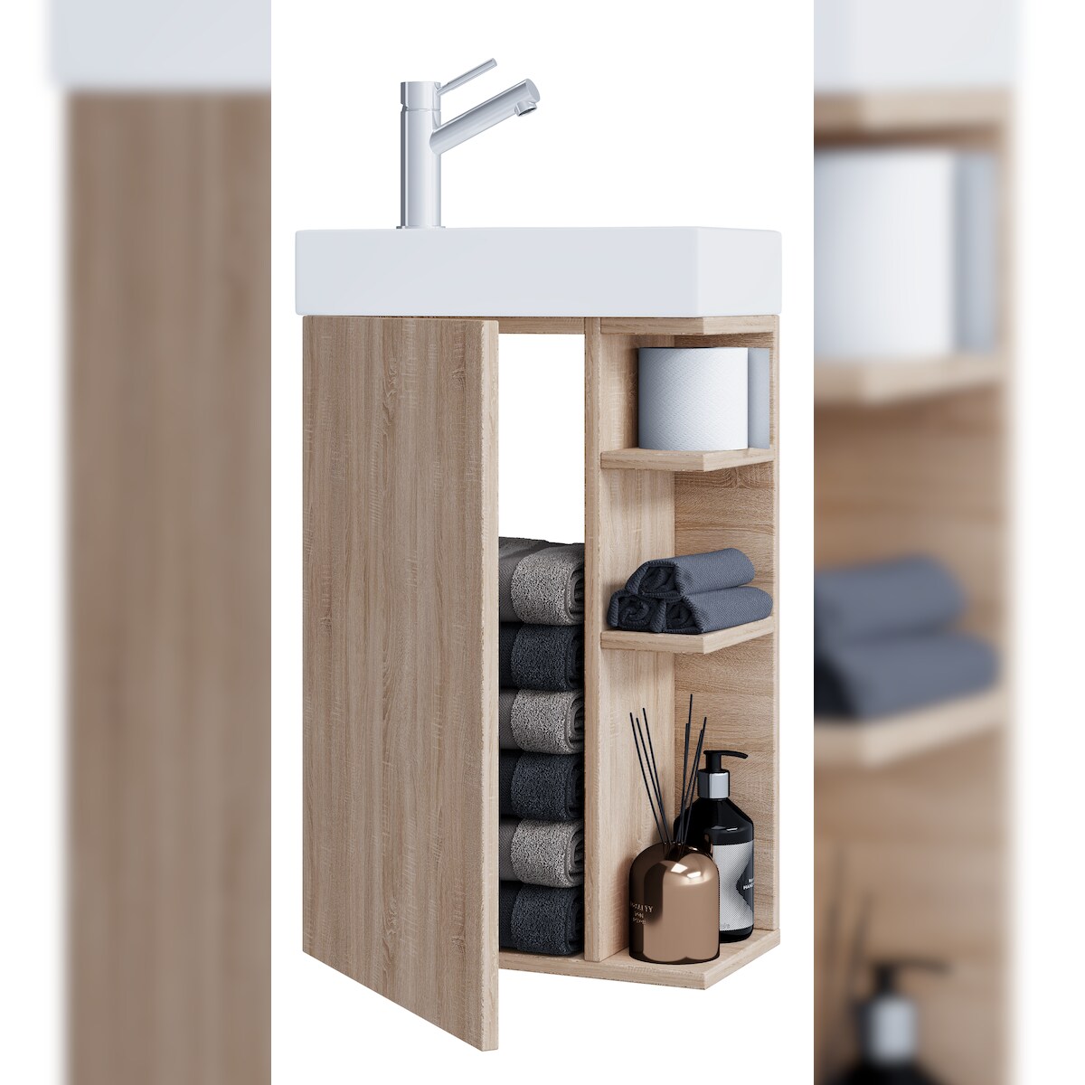 VCM Badmöbel Waschtisch Lumia Sonoma-Eiche H. 70 x B. 40 x T. 22 cm