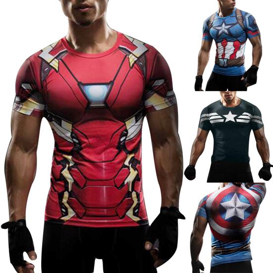 T-shirt de compression Manches Courtes Homme Grande Taille Iron Man Captain America cm