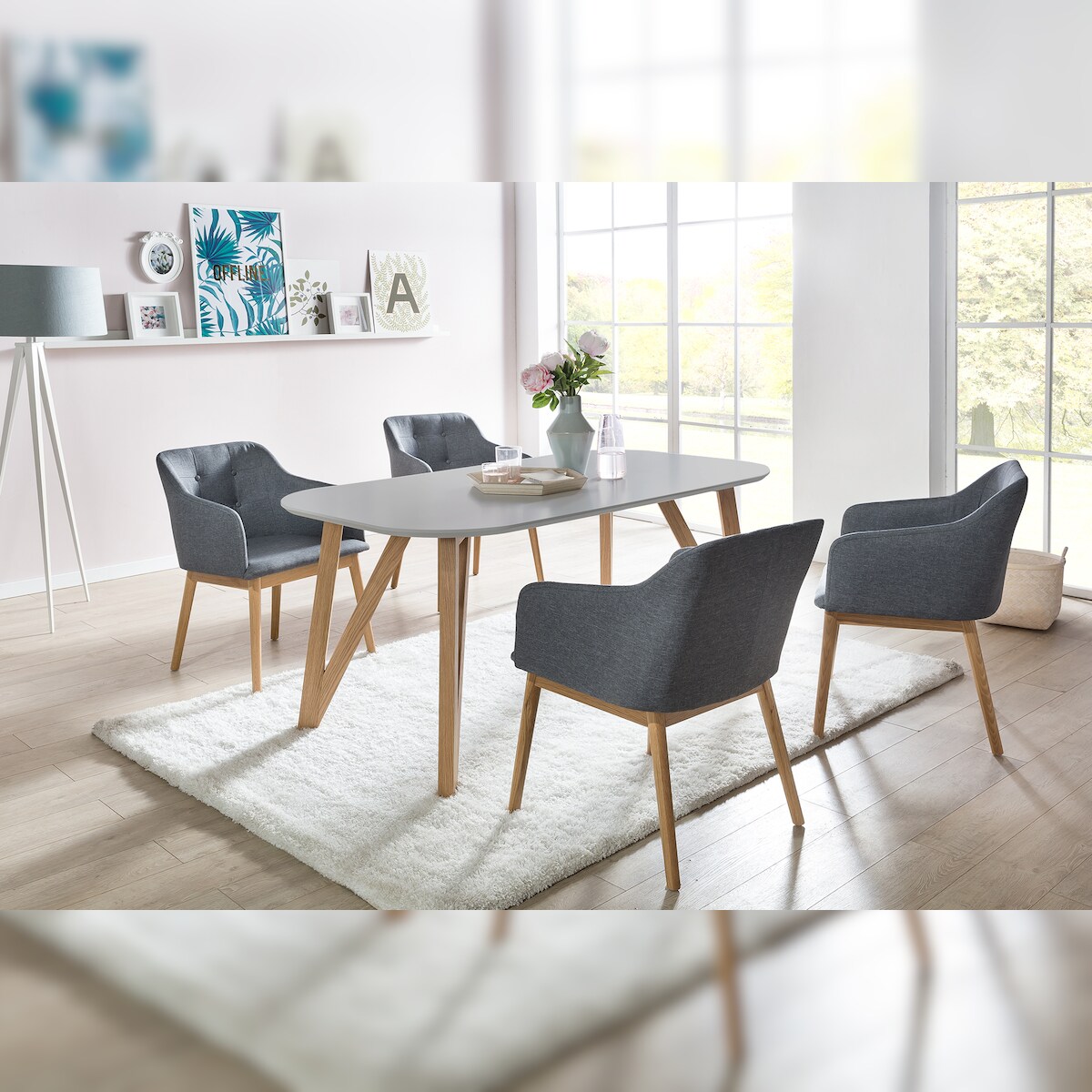 SalesFever Esstisch skandinavisches Design | Gestell Holz massive Eiche | Tischplatte MDF grau lackiert | 200x100x76cm