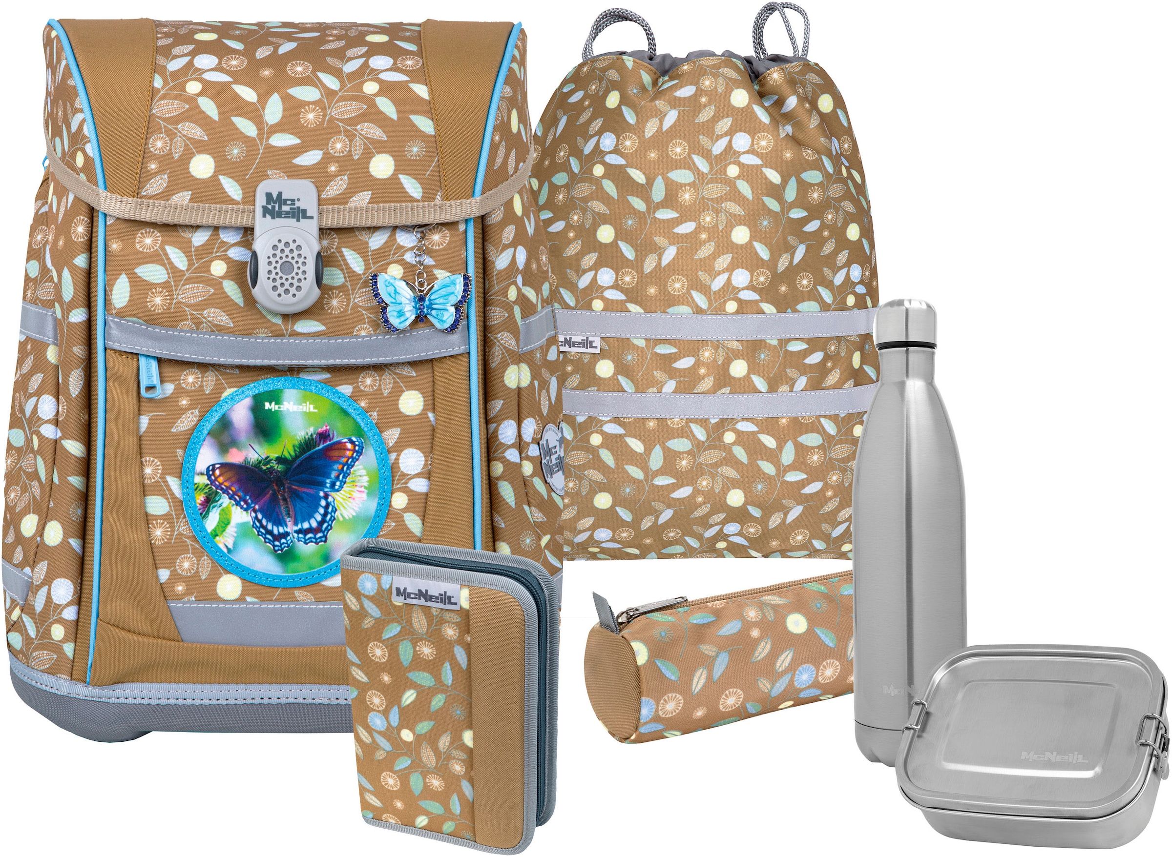 Schulranzen MCNEILL "Ergo Complete", Kinder, Gr. B/H/T: 29cm x 38,5cm x 22cm, bunt (tron), Polyester, Rucksäcke, inkl. Federmäppchen, Turnbeutel, Schlamperrolle & Motivmagnet