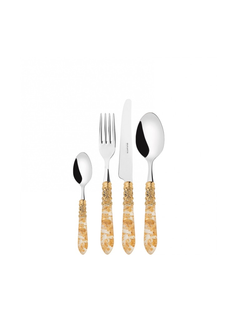 melodia goldlünette, beigefarbener griff, 24-teiliges stahlbesteckset, galeriebox, casa bugatti