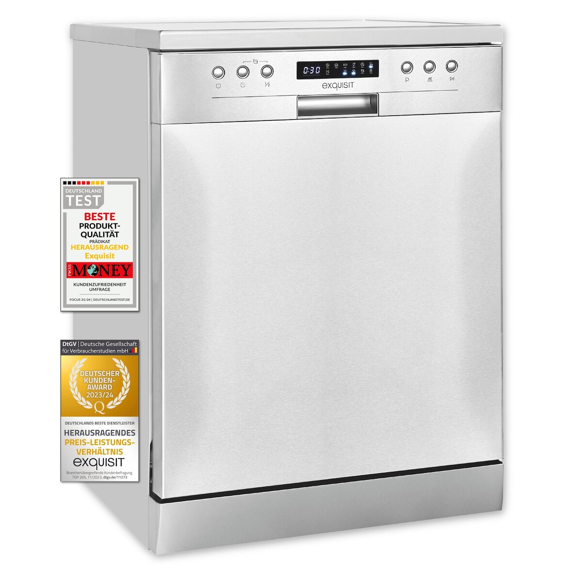 Exquisit Geschirrspüler GSP9414-030D inox | Standgerät | 14 Maßgedecke | Inox