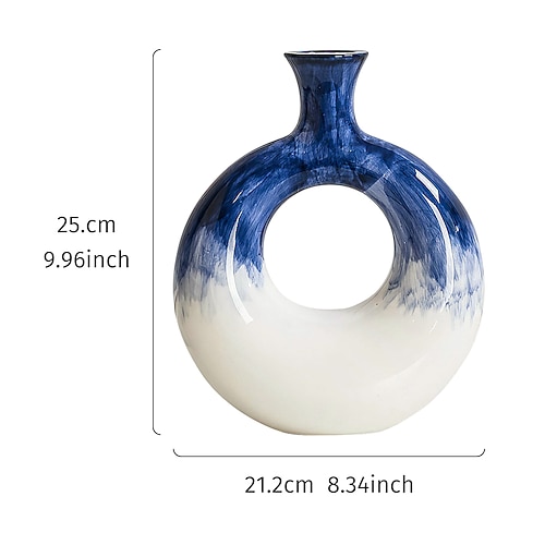 1 pezzo di un colorato vaso circolare ornamentale, un vaso decorativo per la casa in resina dipinto a mano, una composizione di fiori secchi, un vaso decorativo adatto per la decorazione del tavolo