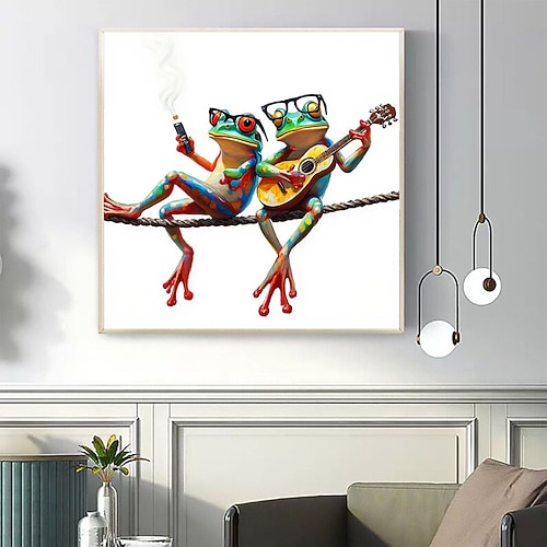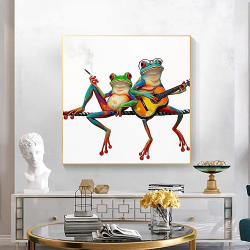 dipinto moderno astratto fatto a mano, divertente, unico, raffigurante una rana che fuma e suona la chitarra, arte murale su tela, poster, decorazioni per la casa, cucina, ufficio, stanza, regali