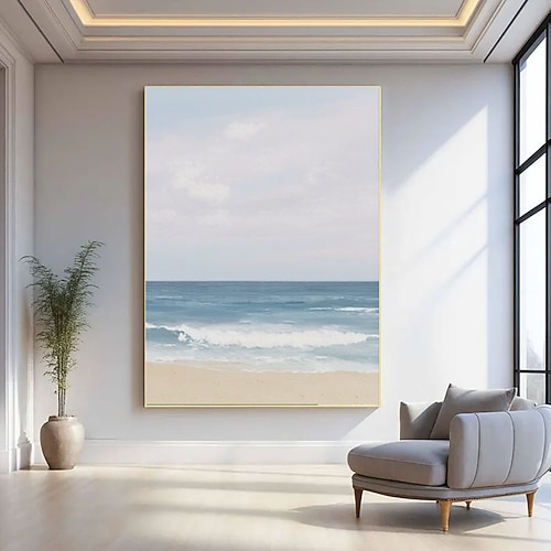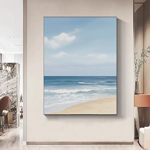 dipinto a olio di onde 3d sulla spiaggia dipinto a olio astratto costiero fatto a mano su tela dipinto a mano di una spiaggia soleggiata nei colori blu e beige dipinto per la decorazione della parete