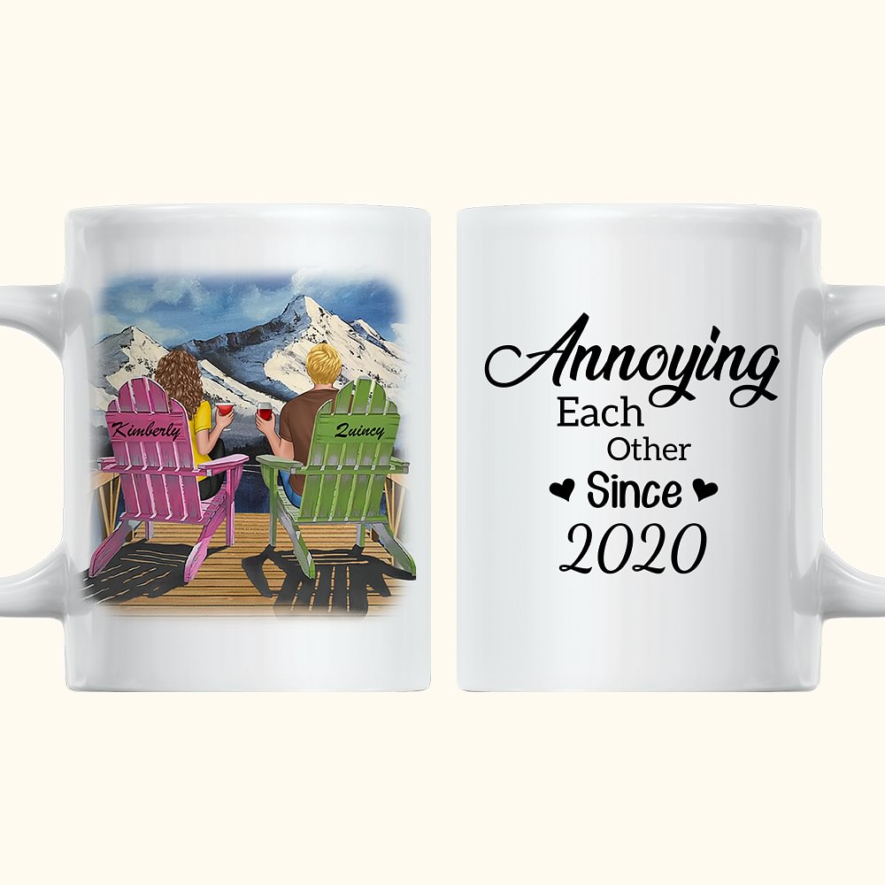 Personlig tegneseriepar som irriterer hverandre Nyt fjellutsikten Hvit keramisk krus Gave til ham 11oz eller 15oz