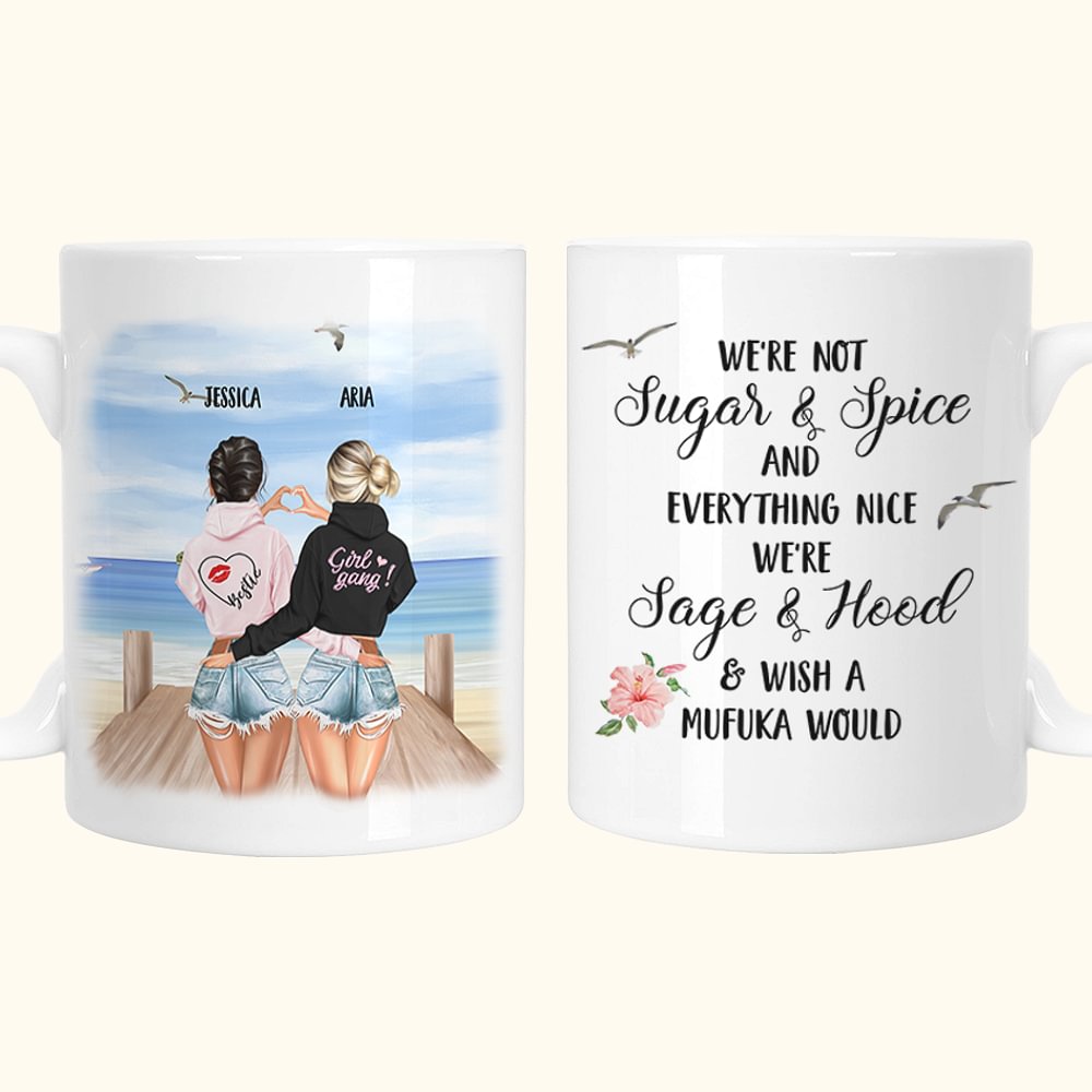 Taza de cerámica personalizada We're Not Sugar And Spice And Everything Nice We're Sage And Hood White Best Friend Gift