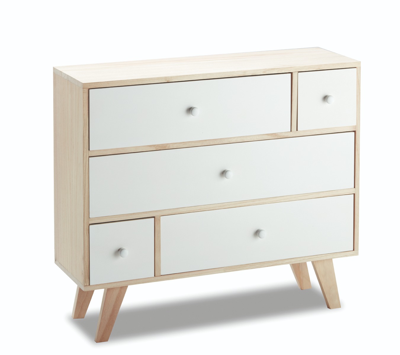 Mobiletto 5 Cassetti In Legno Di Paulownia Con Piedini In Kd
