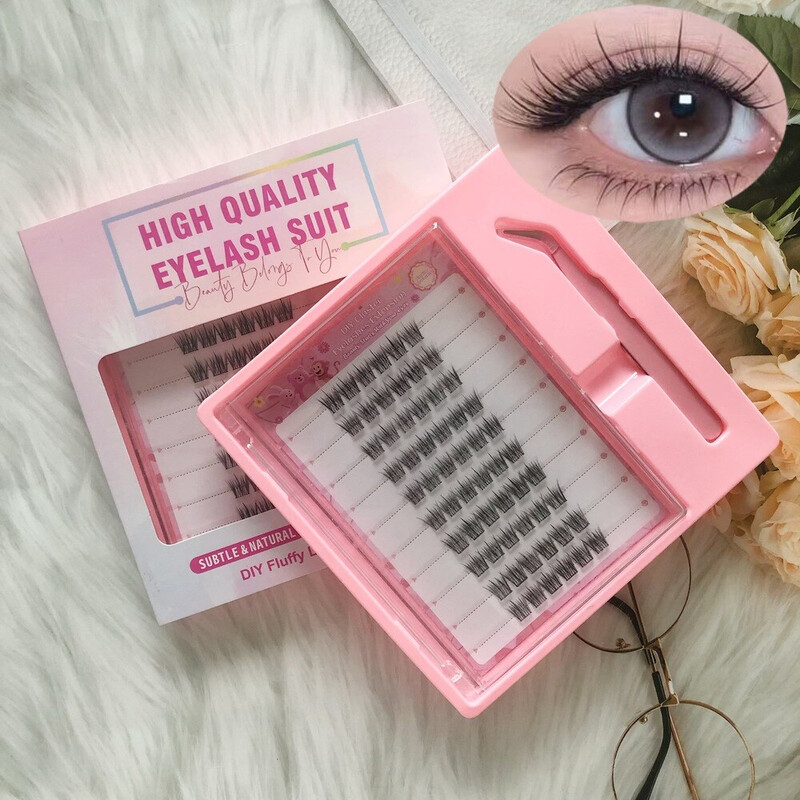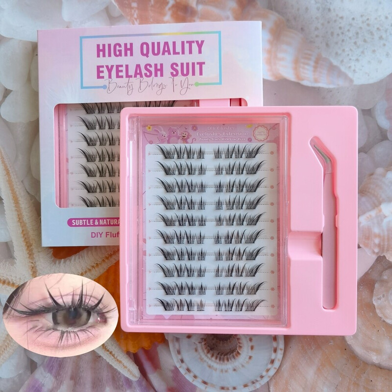 MeoMagic - Kit de faux-cils prédécoupés avec pinces à épiler, 10 lignes - F59