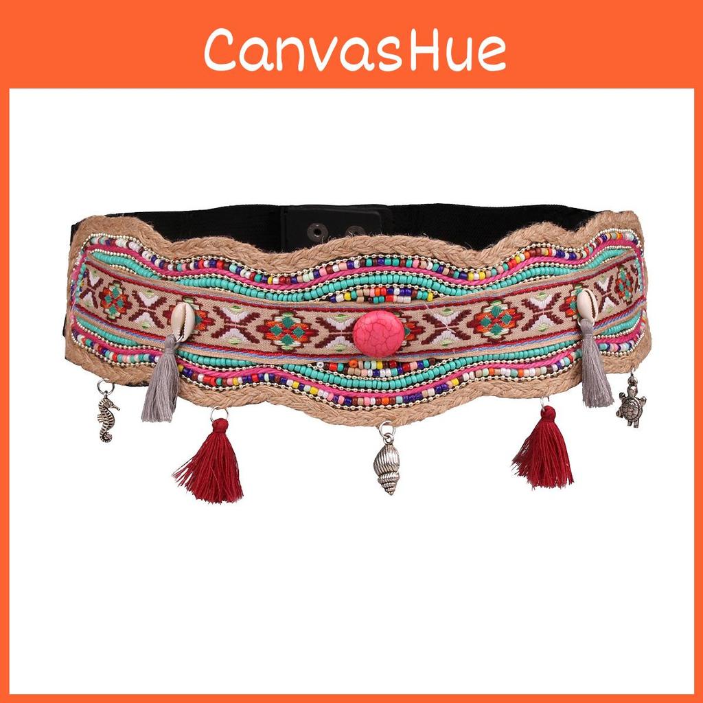Ethnic Style Beaded Waist Belt For Women With Elastic Mesh And Metal Buckle cm