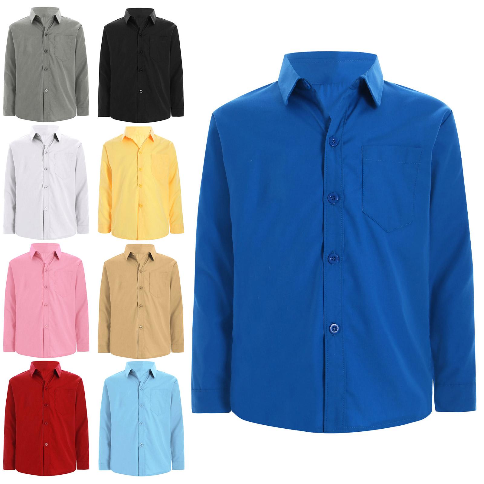 Boys Long Sleeve Dress Shirt Casual Solid Color Collared Button Down Top cm light blue