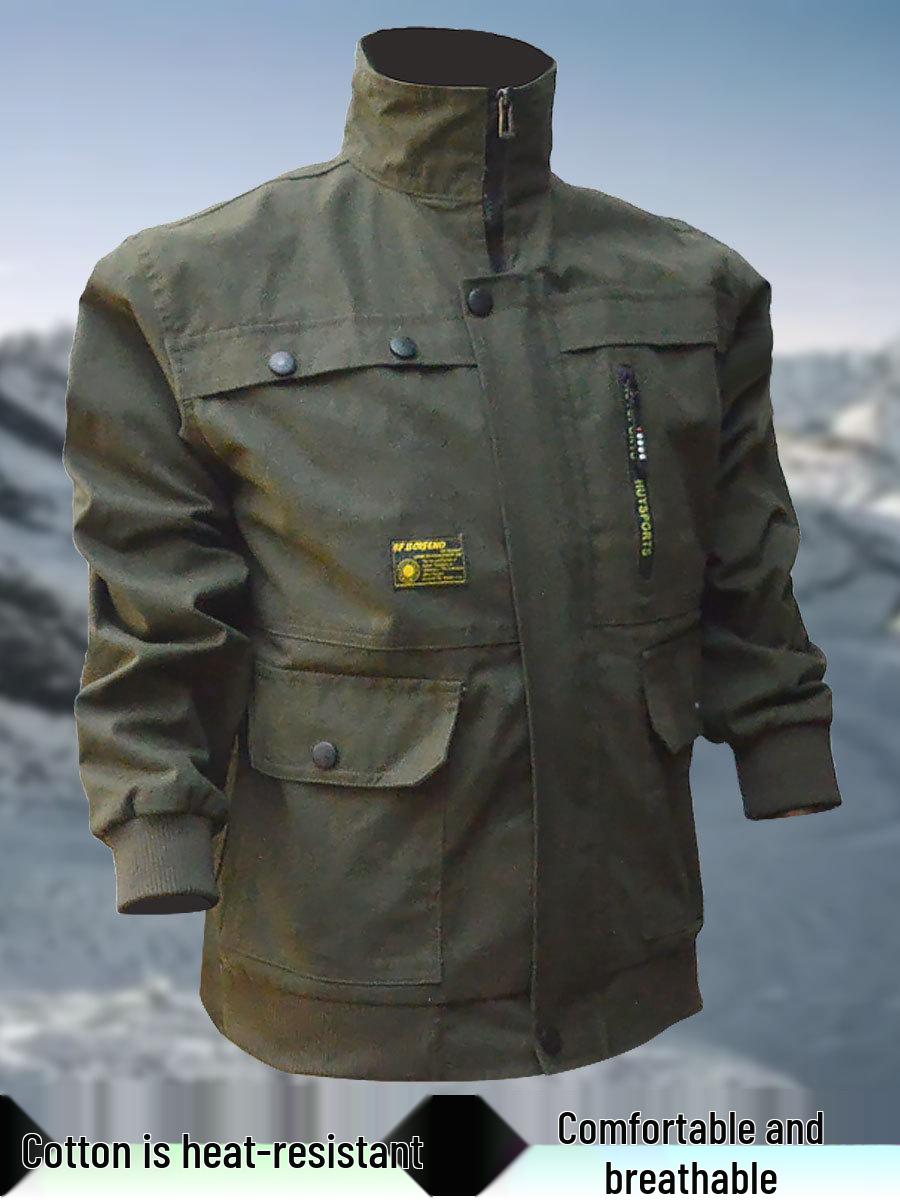 Męska odzież robocza spawalnicza odporna na ciepło: Wytrzymała kurtka do prac budowlanych i napraw samochodowych. cm