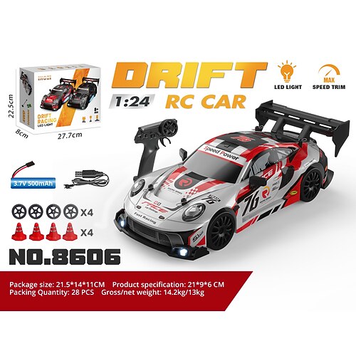Auto da Corsa RC Drift ad Alta Velocità - Veicolo Sportivo Radiocomandato in Scala 1:24 Luci e Coni Regalo di Natale