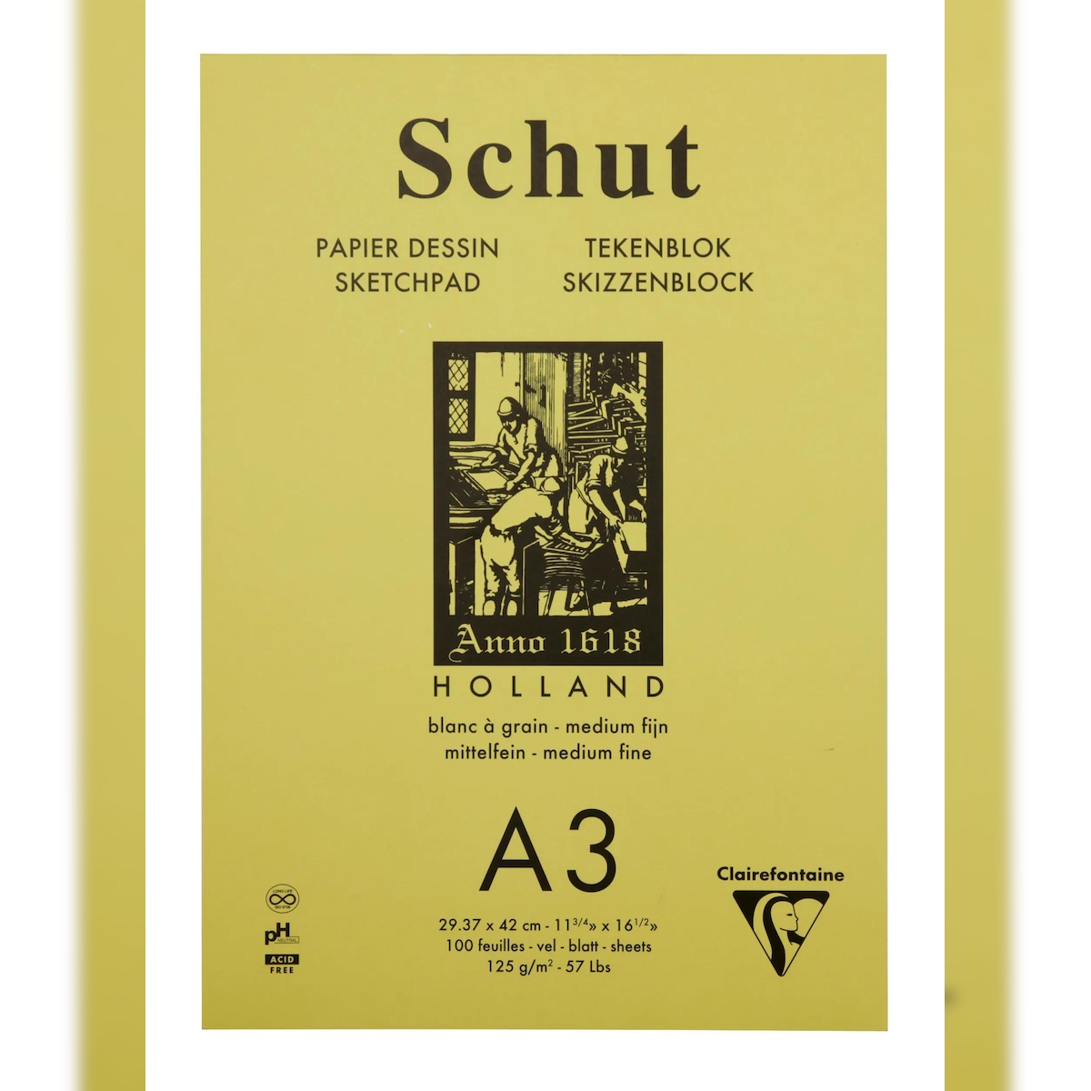 Clairefontaine 2x Schut Skizzenblock A3 geleimt Petit Grain, 100 Blatt weiß 125g, mittelfeine Körnung - SCH11803C