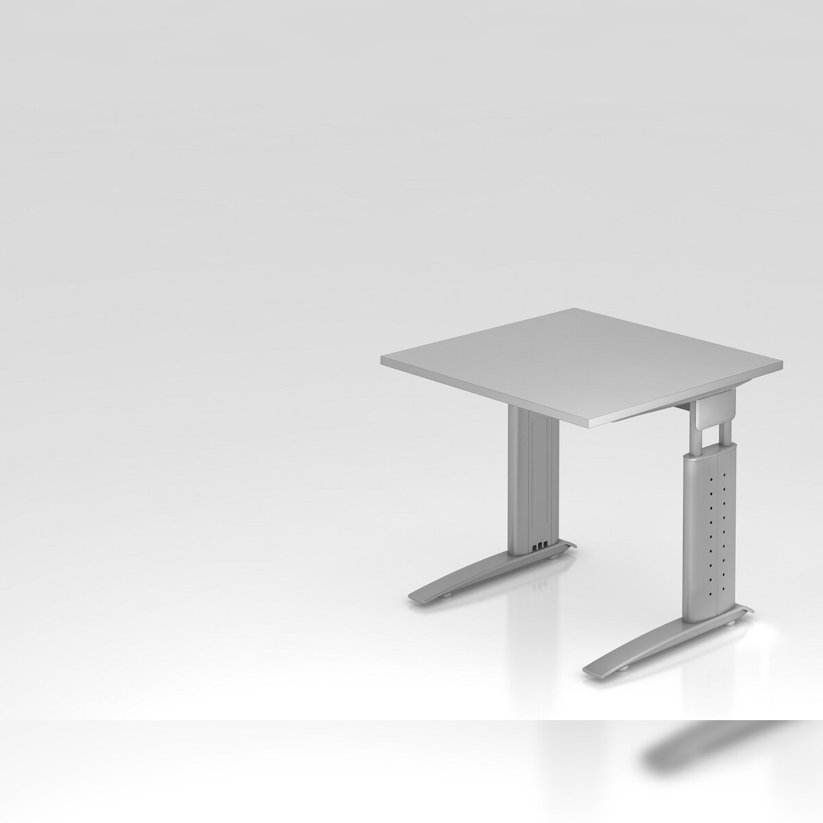 PROREGAL Schreibtisch Mauri | Grau | Silber Gestell | BxT 80x80cm | Arbeitshöhe 68-86cm | höhenjustierbar, 2cm Raster | C-Fuß-Gestell | Bürotisch