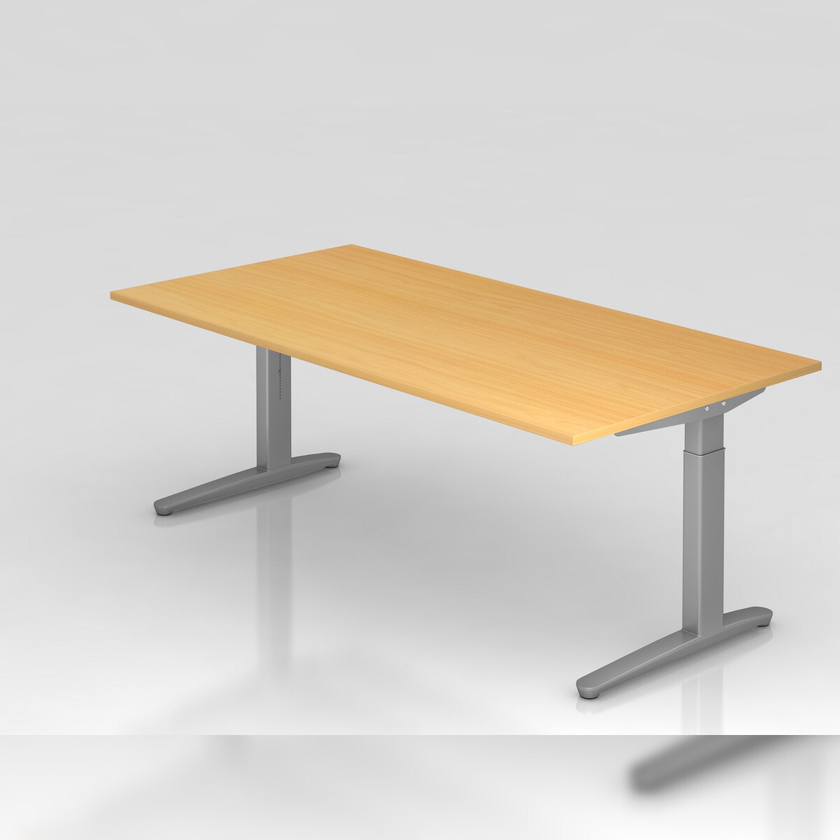 PROREGAL Schreibtisch Mika | Buche | Silber Gestell | BxT 200x100cm | Arbeitshöhe 65-85cm | höhenjustierbar, 1cm Raster | C-Fuß-Gestell
