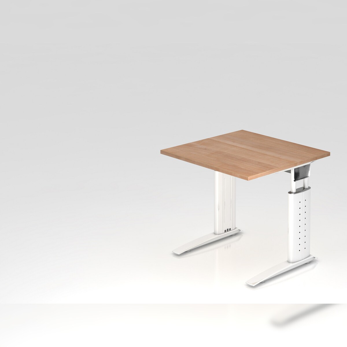 PROREGAL Schreibtisch Mauri | Nussbaum | Weißes Gestell | BxT 80x80cm | Arbeitshöhe 68-86cm | höhenjustierbar, 2cm Raster | C-Fuß-Gestell