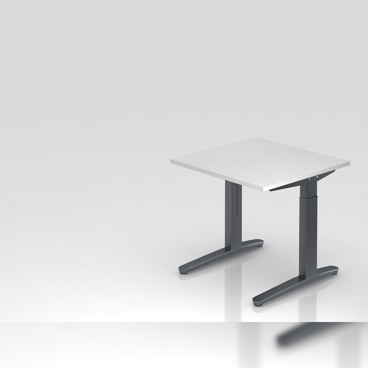 PROREGAL Schreibtisch Mika | Weiß | Graues Gestell | BxT 80x80cm | Arbeitshöhe 65-85cm | höhenjustierbar, 1cm Raster | C-Fuß-Gestell | Bürotisch