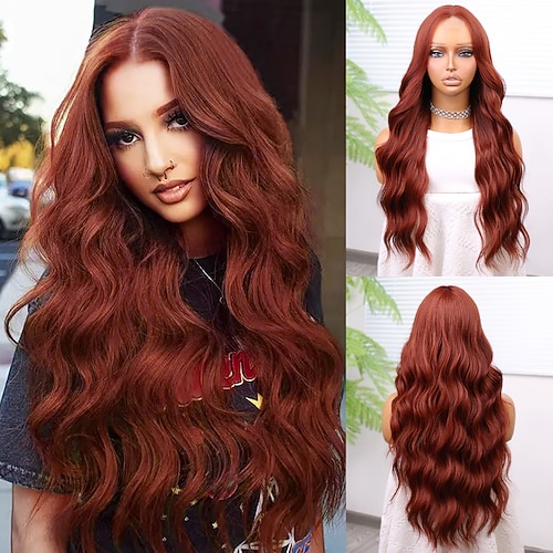 Parrucca in pizzo sintetico Riccio Stile 26 pollice Arancione Riga centrale Parte a U Parrucca Per donna Parrucca Ramato