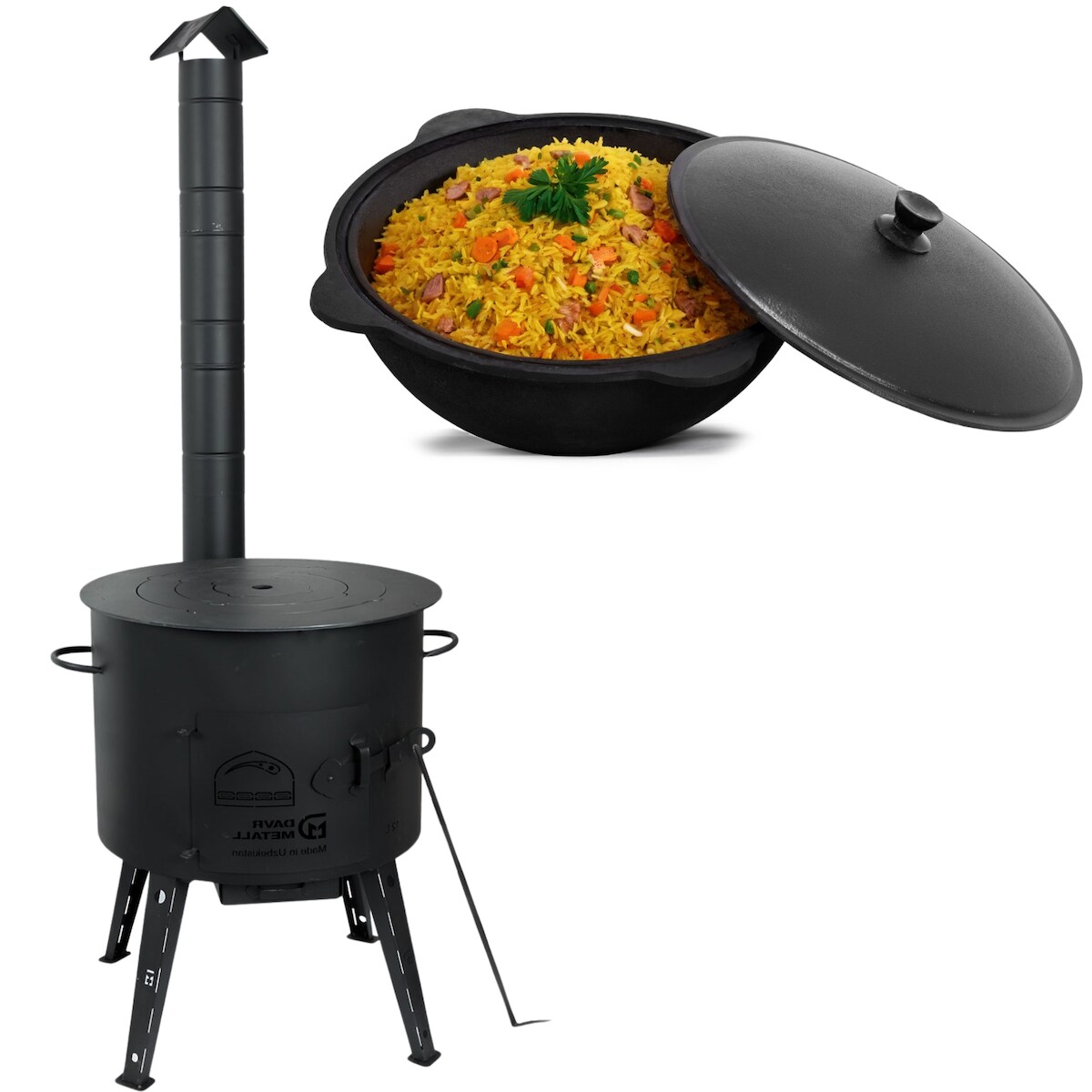 4BIG.fun Ø36 Uchag 2mm stahl Utschak mit Schornstein Abzugsrohr Utschag Ofen 8L Kazan Eben Kasan Feuerstelle Feldküche Außenküche Eintopfofen Gulaschkan