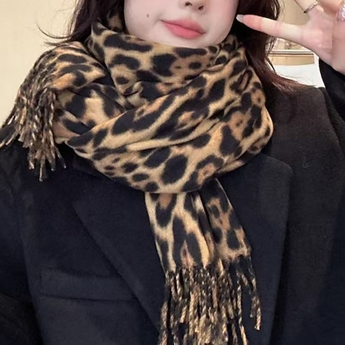 Per donna Sciarpa rettangolare Streetwear Quotidiano Data Grigio Beige Sciarpa Leopardo