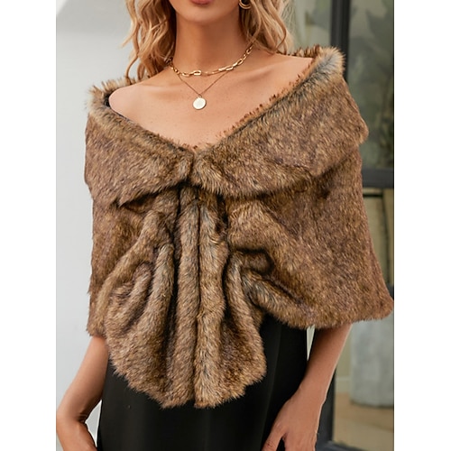Set con scialle in pelliccia sintetica, spilla con strass, collana di perle finte, orecchini, guanti lunghi da opera, da donna anni '20, sposa, matrimonio invernale, stole e sciarpe in pelliccia di