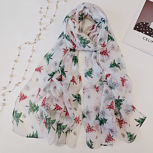 Per donna Sciarpe Scialle Natale Quotidiano Ferie Poliestere Vacanza Essenziale Casual Protezione solare All'aperto 1 Pezzo