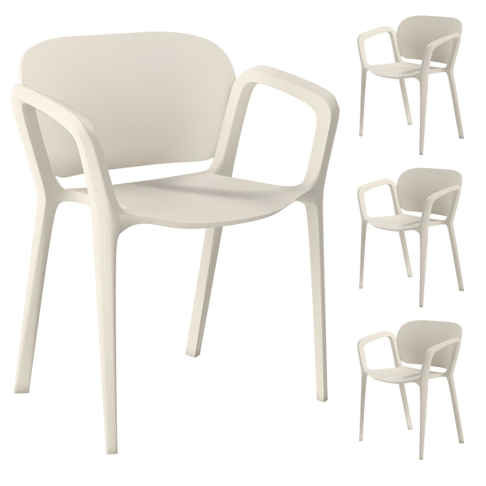 Set 4 sedie da giardino impilabili e moderne in pp bianco 60x56x75 cm