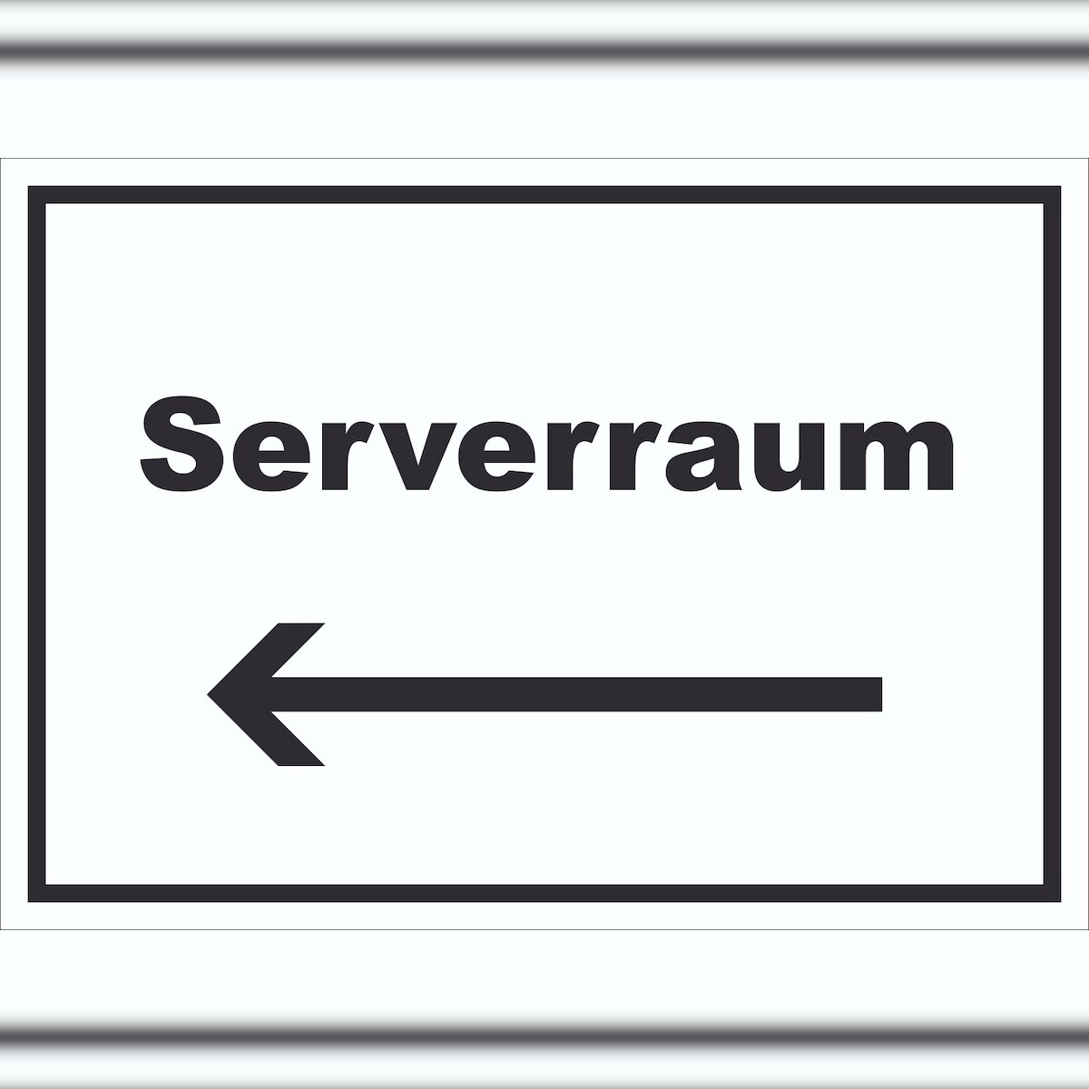 HB-Druck Serverraum Schild mit Text und Richtungspfeil links Computer IT PC waagerecht A4 Rückseite selbstklebend