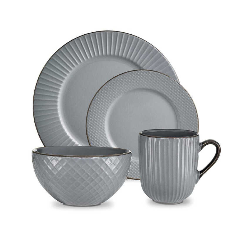 Tower Empire 16 Piece Dinnerware Set, Grey & Brass