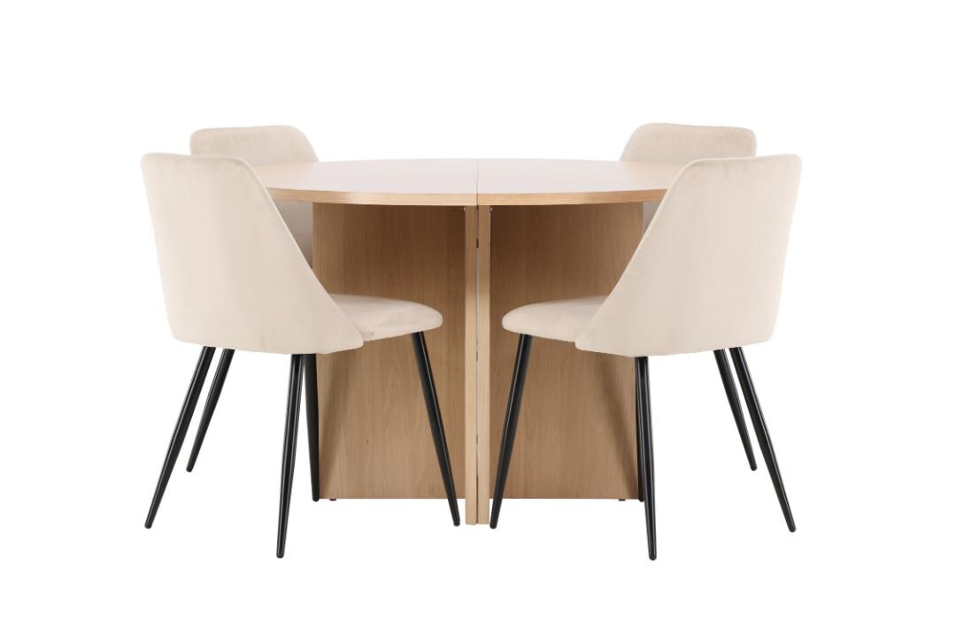 Essgruppe JOCKENHÖFER GRUPPE "Thilo/Florina, Sitzgruppe (Set, 5-tlg, 1 Tisch und 4 Stühle)", tisch wildeiche, stühle beige, Tisch Wildeiche, Stühle beige, Sitzmöbel-Sets, Essgruppe, Tisch Durchmesser 120 cm, Wildeiche, Stühle 360 drehbar