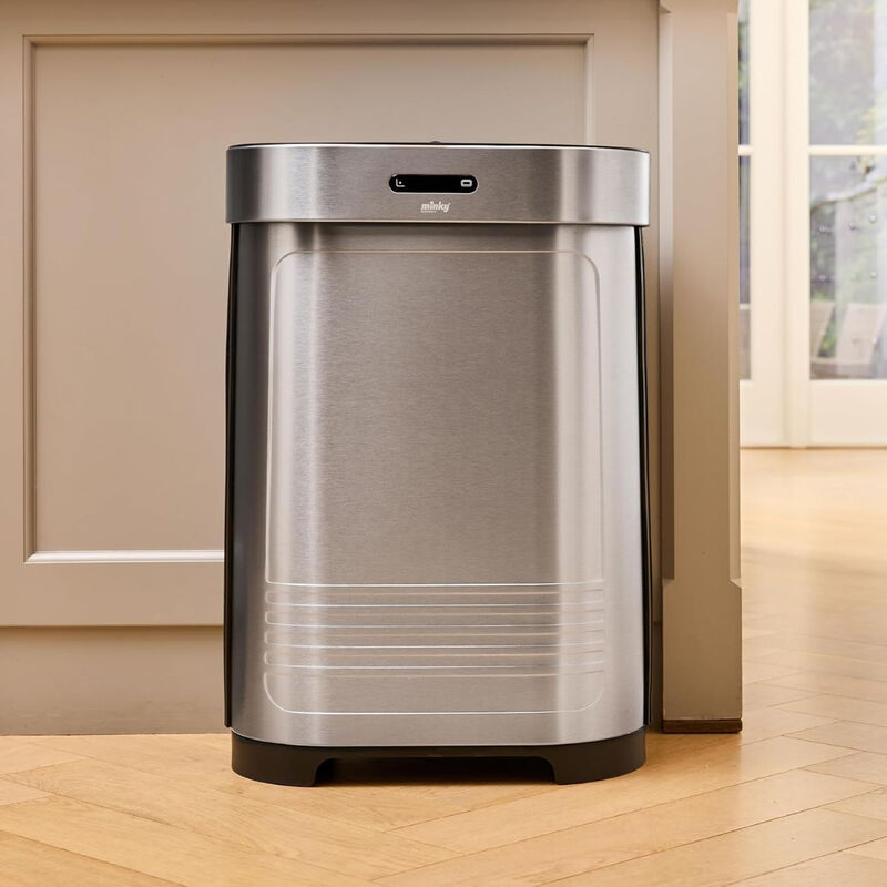 Minky 55L Stainless Steel Automatic Motion Sensor Kitchen Bin, Fingerprint and Stain Resistant, Battery-Operated for Indoor Use