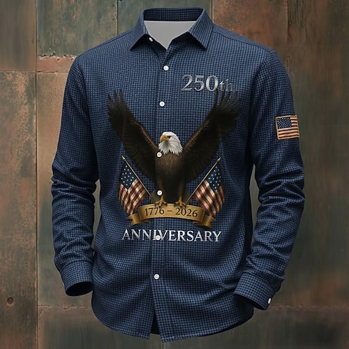 Per uomo Aquila Bandiera degli Stati Uniti 250° anniversario degli Stati Uniti Camicia Camicia Western Camicia da cowboy Manica Lunga Vintage Retrò Vacanza Ferie Primavera Autunno Collo ripiegato