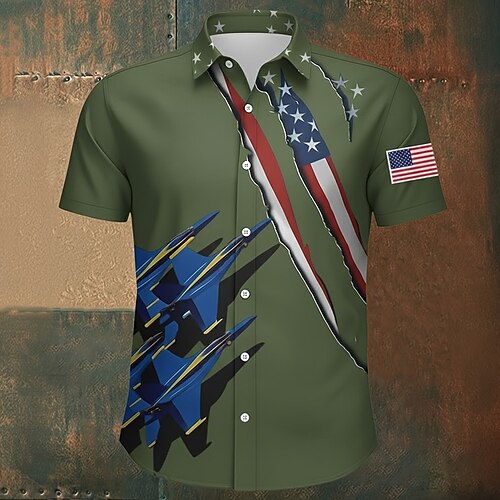 Per uomo Bandiera degli Stati Uniti Patriottico 250° anniversario degli Stati Uniti Camicia Camicia con Bottoni Manica Corta Vintage Retrò All'aperto Ferie Estate Primavera Collo ripiegato Stampa 3D