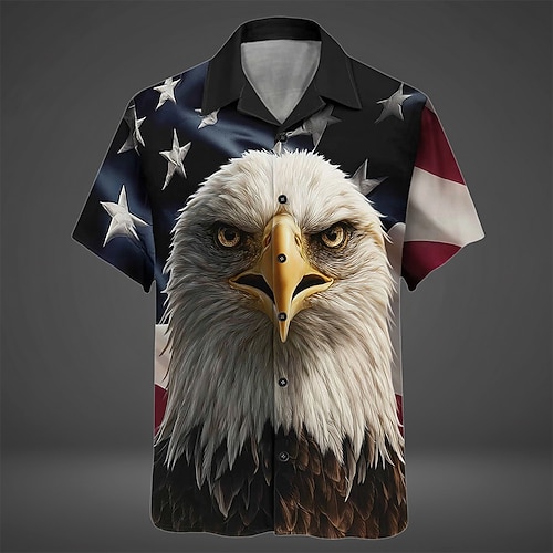 Per uomo Aquila Bandiera degli Stati Uniti 250° anniversario degli Stati Uniti Camicia Camicia con Bottoni Manica Corta Vintage Retrò All'aperto Ferie Estate Primavera Collo ripiegato Stampa 3D