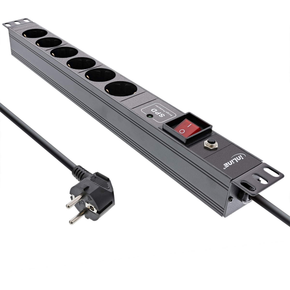 InLine® 19" Steckdosenleiste, 6-fach, ÜSS, Überlastschutz, Schalter