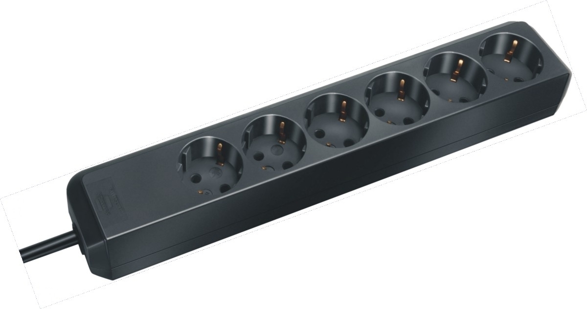 Helos Steckdosenleiste CLASSIC, 6-fach, schwarz, 3,0m, ohne Schalter