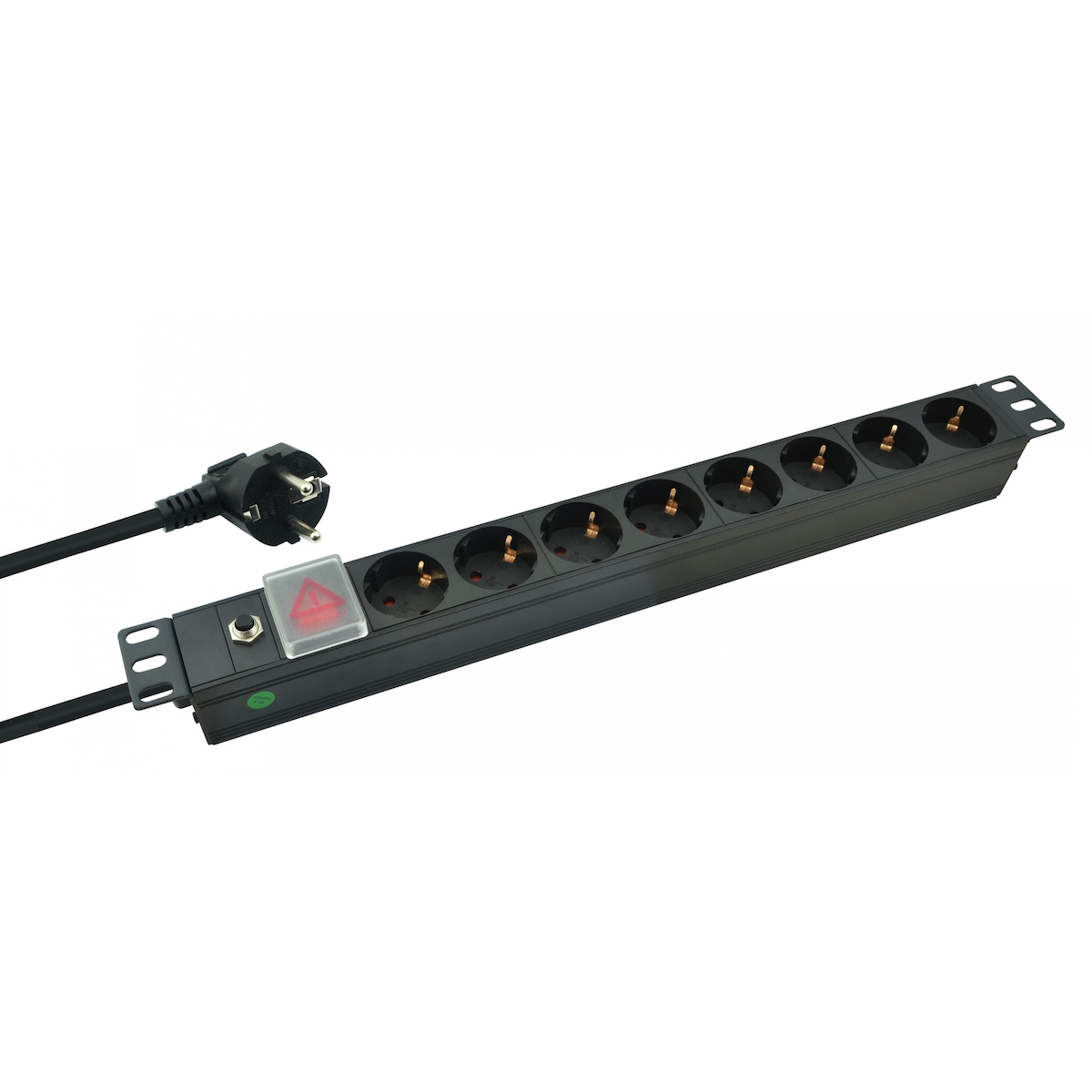 Helos 19" Steckdosenleiste PROFESSIONAL, 8-fach, schwarz, 2,0m, mit Schalter