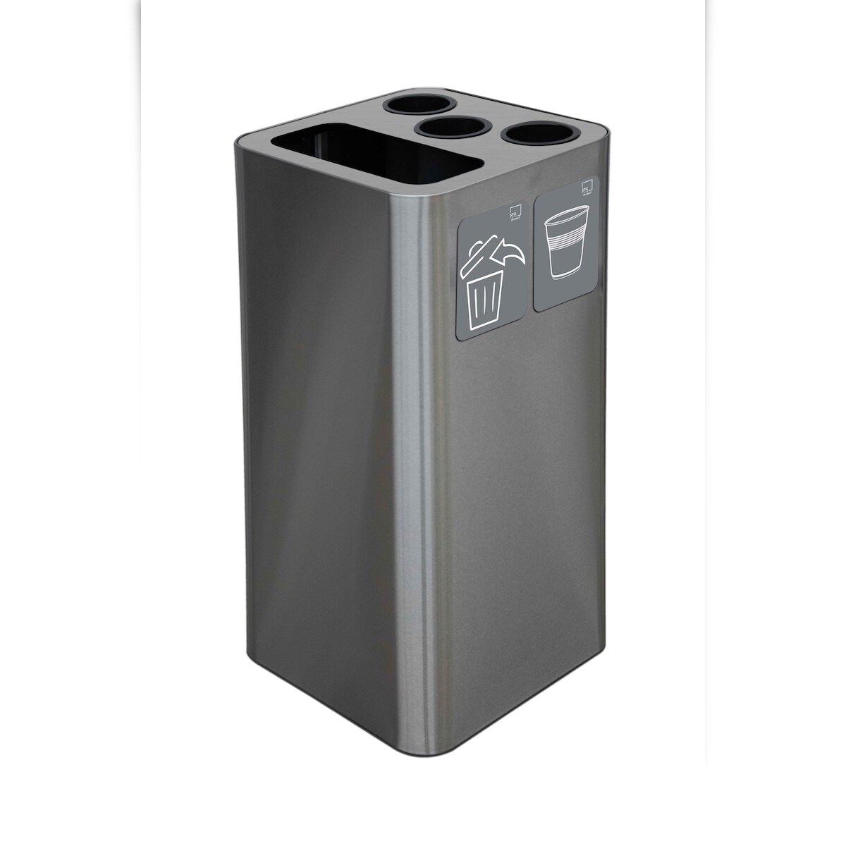 Stil Casa PURE Getränkehalter, Edelstahl 38x38x80 cm, 3 Getränkehalterlöcher + Papierkorb, 2 magnetische Piktogramme, 100 L, satinierter Finish.