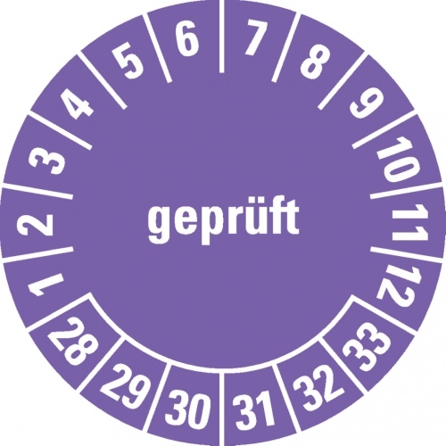 Dreifke® Prüfplakette geprüft 28-33, violett/weiß, Dokufolie, selbstkl., Ø30mm, 500 Stk.