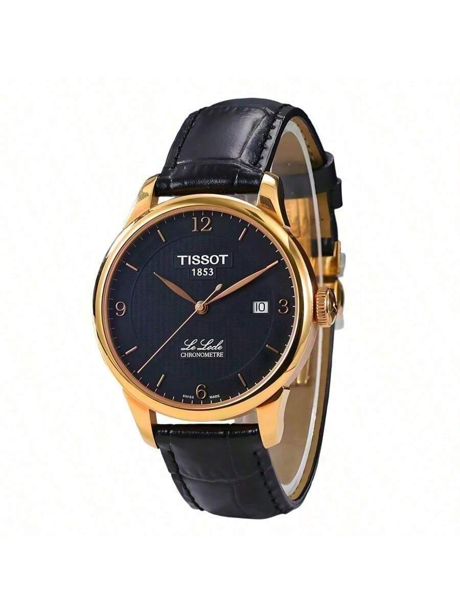 Cette montre chic Tissot Le Locle Automatique dorée avec bracelet en cuir véritable, accessoire de luxe tendance, essentielle et élégante T006.408.36.