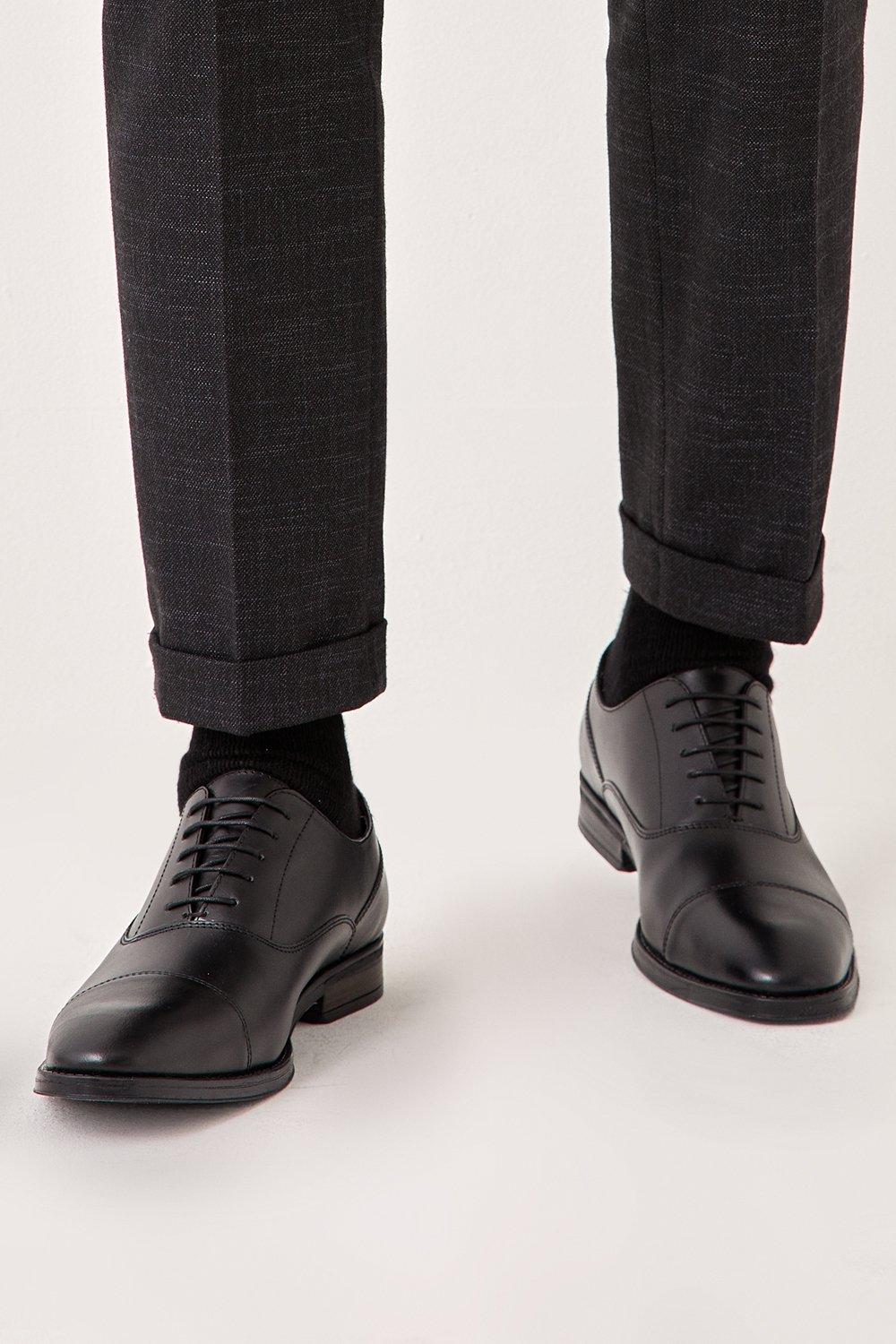 Burton Mens Leather Smart Black Oxford Toe Cap Shoes - Size UK 11 | Burton Sale | Discount Designer Brands