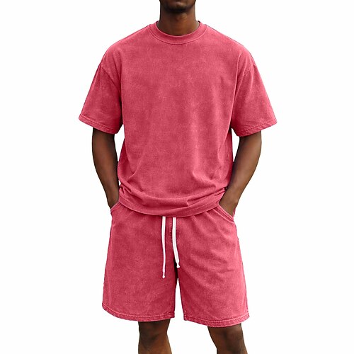Per uomo Tuta Set pantaloncini e T-shirt Set tinta unita in cotone casual Manica Corta Girocollo Estate Tinta unica Ginnastica Casual 2 Pezzi Vintage ▾ Casuale Vacanza Abbigliamento quotidiano