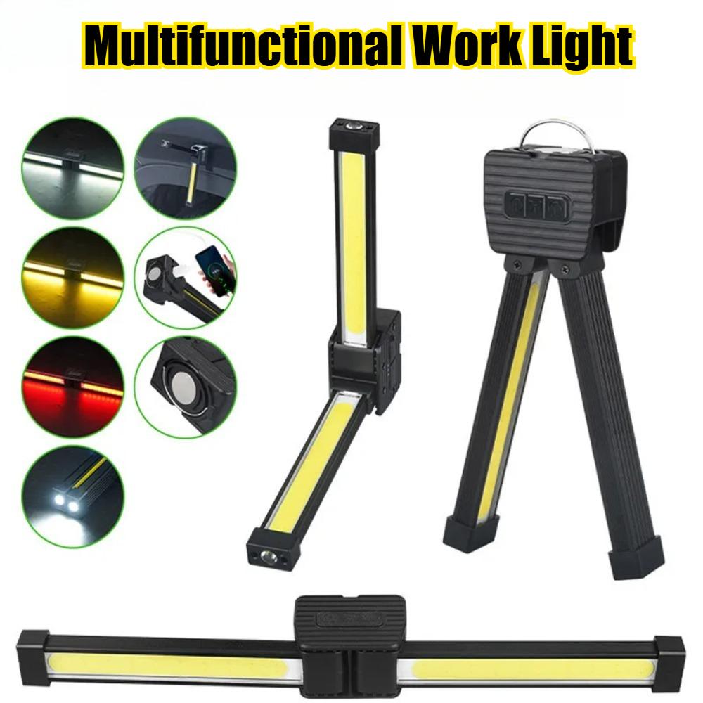Oppladbart LED-arbeidslys Sammenleggbar lommelykt med magnetisk opphengskrok Type-C USB-lading Fakkel eller Campingbilreparasjon