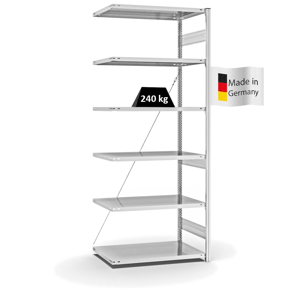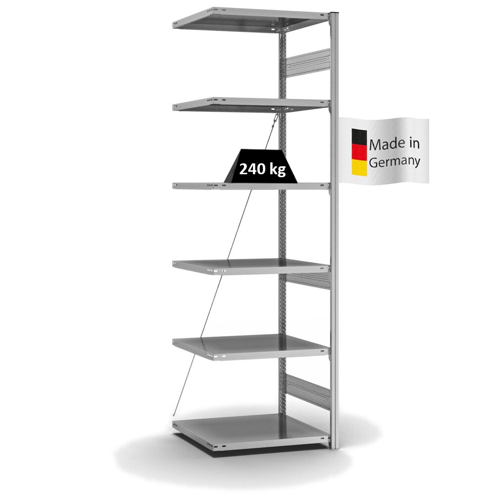 PROREGAL Fachbodenregal Stecksystem | Anbauregal | HxBxT 250x75x60cm | 6 Ebenen | Fachlast 240 kg | Einseitig nutzbar | Verzinkt